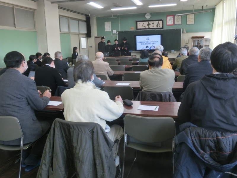 ★1月29日(木):全校総合の発表会がありました。12月に、教室で生徒同士の発表会を行いましたが、今回は地域の方や全校生徒に向けて発表を行いました。希望するグループが「外来生物について」「保護猫について」「廃材を利用した香水づくり」「上郷・座光寺の歴史」「リニアについて」のテーマで発表をしました。今まで探究してきたことを、多くの人にわかりやすく伝えるためにはどうしたらよいのか相談したりリハーサルをしたりして準備を重ねてきたので、立派な発表になりました。