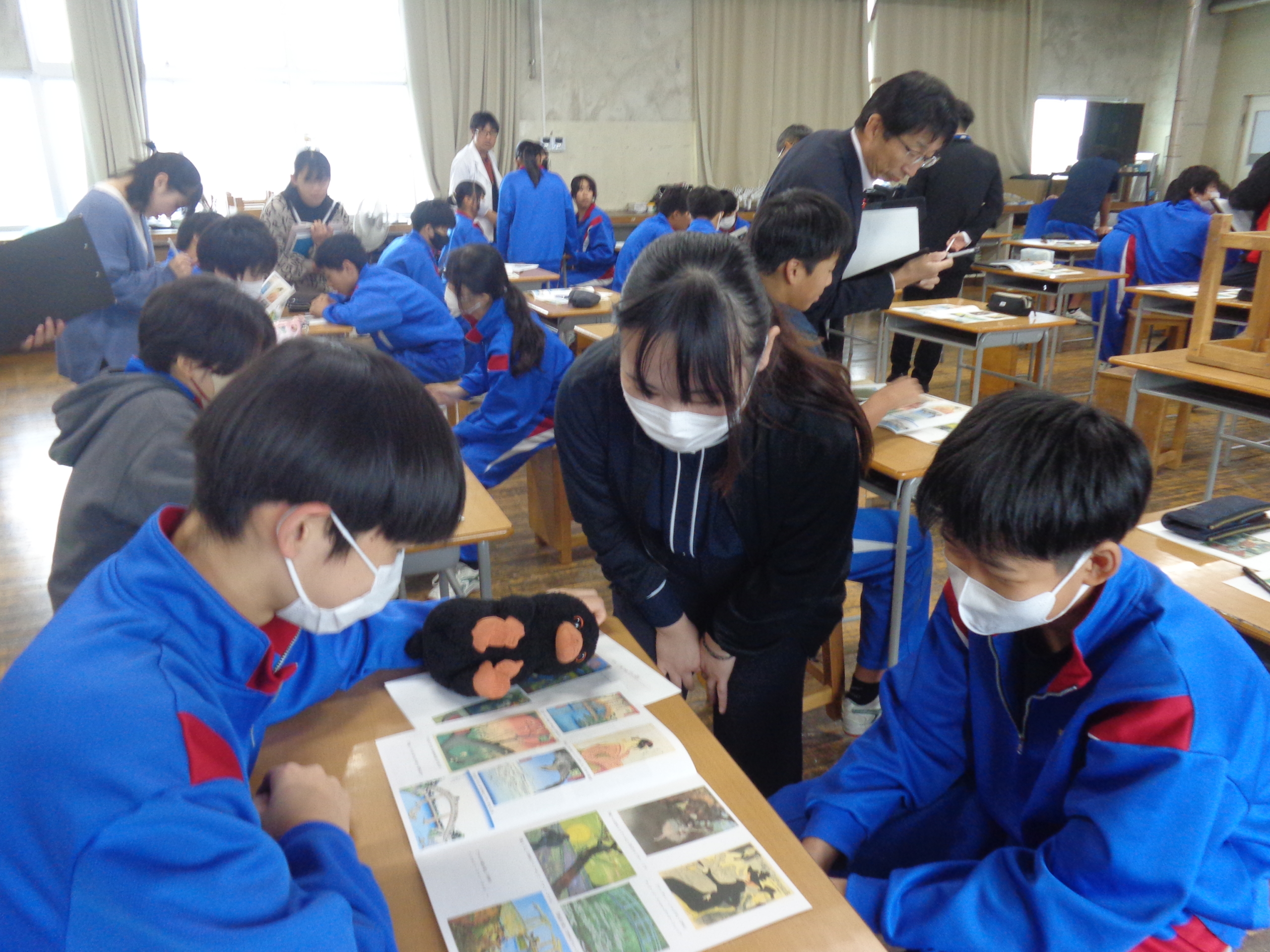 ★22日(水)『美術の研究授業』:日本の文化が西洋の文化に影響を与えたことに気づき、そういう視点で様々なものを見聞きしていこうという美術の授業を、浮世絵を取り上げて学習しました。生徒は、芸術も文化も持ちつ持たれつつ発展してきたことに驚いていました。